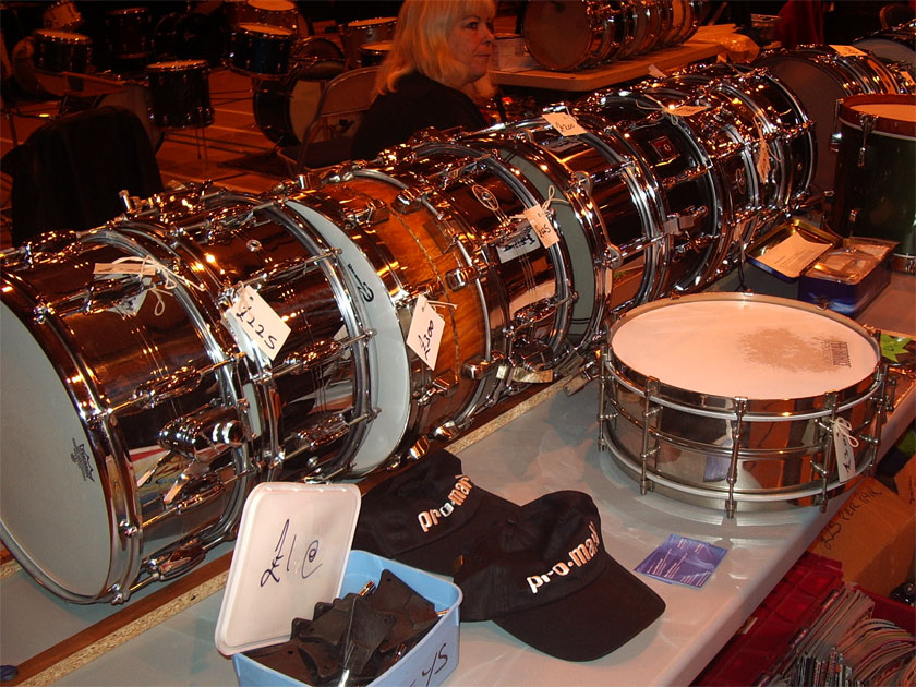 We had a lot of fun again. The Birmingham based drum show is getting bigger every year and more drums are shown. We saw a lot of Premier, Ajax, Hayman, Rogers UK, Carlton etc. Among the custom builders there was Tiki Drums, Highwood, Guru, AD Drums, Jalapeno Drums, Liberty and more. Several shops offered loads of parts and drums, cymbals and everything you need to beat the skins. Dedicated to John Good. We missed you, get well soon! |