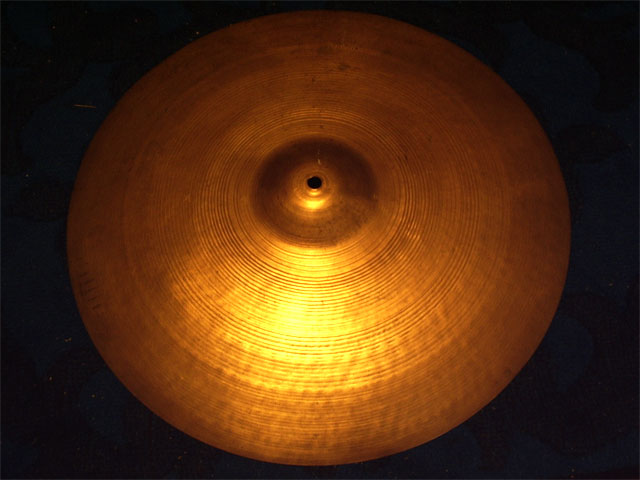 17 inch CRASH This is a paperthin 1950s A. Zildjian crash, very flexable edge's. Even with a light touch the cymbal explodes very easy. Old style cymbal with mature quality. Bautiful.